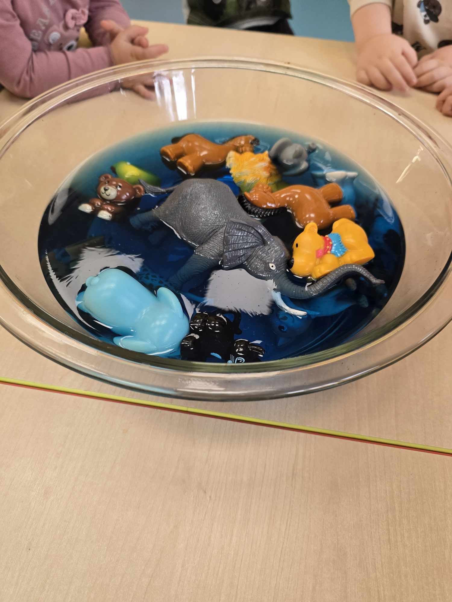 Szukamy zwierzątek ukrytych pod wodą:) Zabawa sensoryczna.
